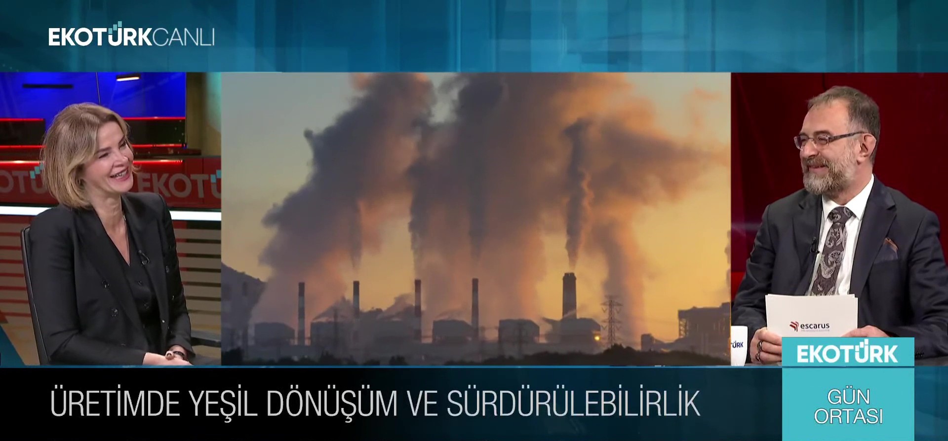 Dr. Kavak, programda ülkelerin iklim değişikliğine uyum çalışmaları, iklim müzakereleri, yenilenebilir enerji üretimi alanındaki gelişmeler, enerji kompozisyonundaki değişimler ve ülkelerin yeşil dönüşüm projeleri, hakkındaki görüşlerini dile getirdi. Dr. Kavak, yeşil dönüşümün finans ihtiyacıyla ilgili soru kapsamında, Ticaret Bakanlığı’nın “Responsible” Programı ile Sanayi ve Teknoloji Bakanlığı tarafından başlatılan “Yeşil Dönüşüm Programı” hakkında bilgi verdi.