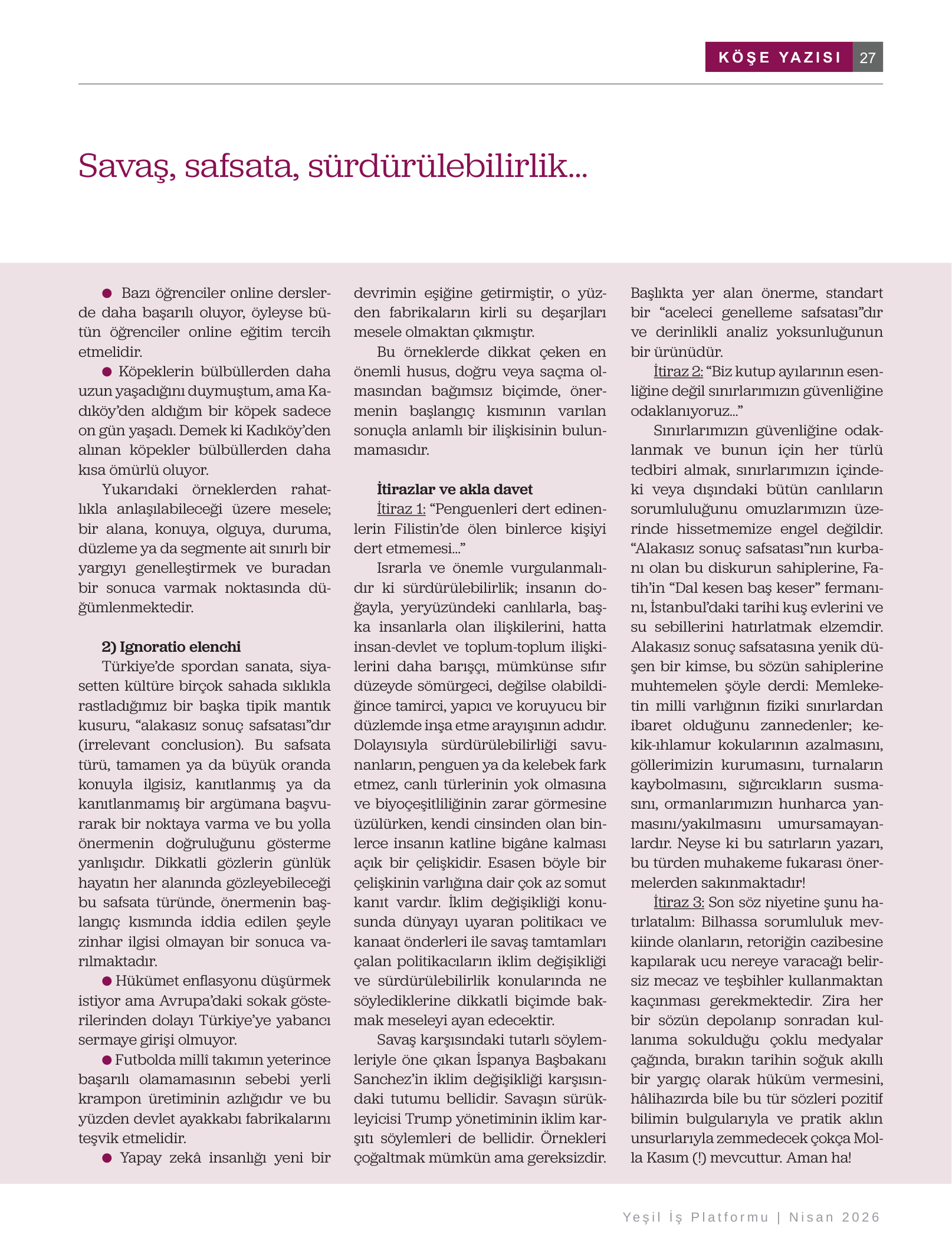 Savaş, Safsata, Sürdürülebilirlik…